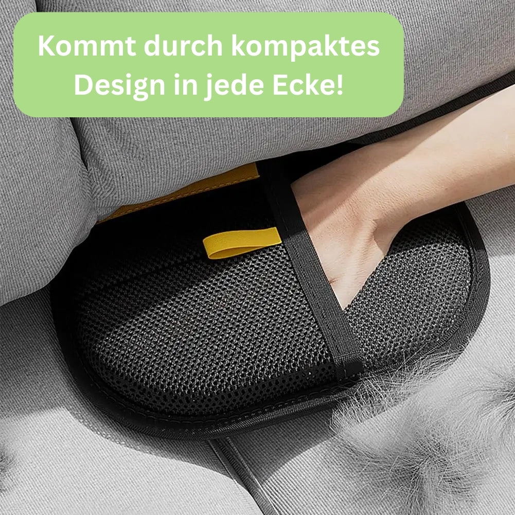 Im Gegensatz zu anderen Produkten verbindet unser FellMagnet mehrere Funktionen in einem Handschuh. Durch die statische Aufladung haften die Haare am Handschuh. Die feinen, nach innen gerichteten Härchen sammeln die Haare auf und leiten sie in die Mitte des Handschuhs. Die extrem einfache Handhabung sorgt dafür, dass du alle Oberflächen in Sekunden reinigen kannst. Du kannst unseren Handschuh nach dem Reinigen einfach unter fließendem Wasser abspülen und er funktioniert danach durch das robuste Design genau so gut wie vorher!